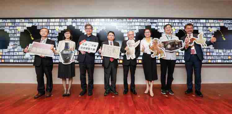 糖果派对携手创利空间为故宫建置的智慧文物互动导览墙及轮播墙,,,,今日正式启用。。(左四:糖果派对新事业暨投资管理总部副总经理杨本豫、、、右四:故宫博物院院长吴密察、、、右三:太极影音董事长黄宝云)